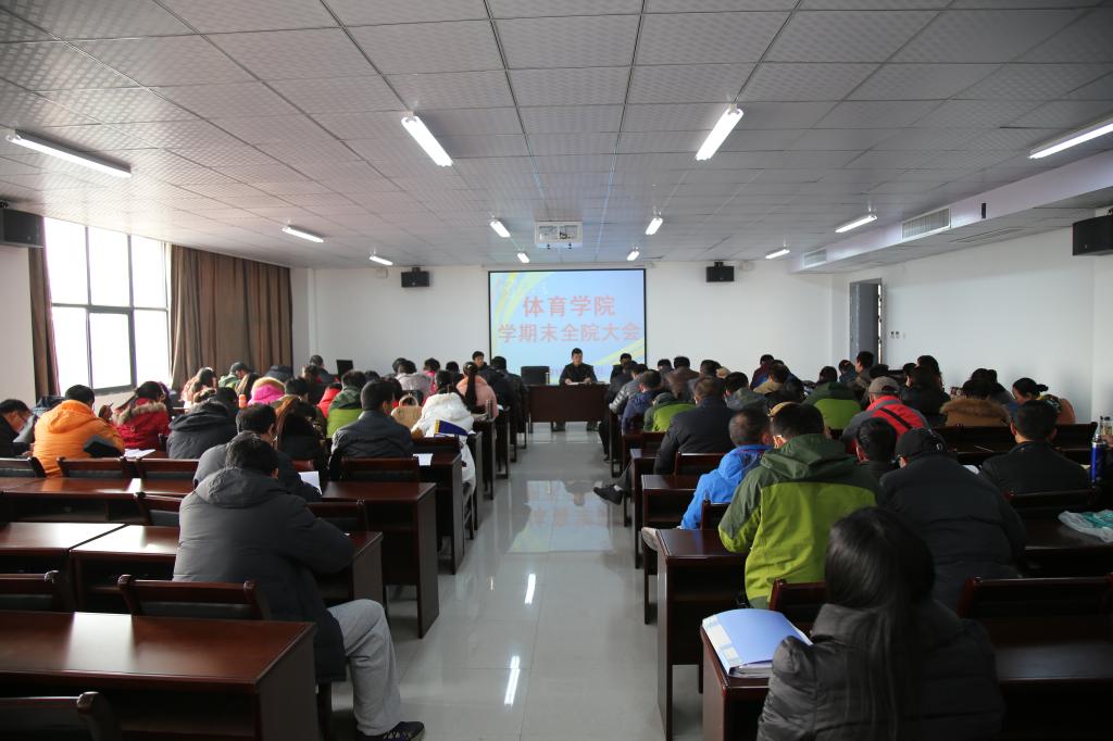 会上,王勤院长首先详细传达了学校务虚会上郑书记和甘校长的讲话精神。王院长还对2015年工作提出要求和期望。一是继续做好教学常规工作,对现行部分教学大纲的进行修订,为新学期教学做好准备;二是继续加强教研室建设,开展教研活动,充分发挥教研室职能,严格听课制度,全面提升教学质量,发挥教研室积极作用;三是进一步修订完善学院各项规章制度,提高各科室教研室工作执行力;四是借国家近期在体育方面出台的一系列政策规划学院发展思路,共同推进学校学院发展。会上,王勤院长还就2014年学院存在的问题一一做了剖析,希望全体职工发扬特长,改进不足,努力工作,为2016年的教学评估做好本职工作。
