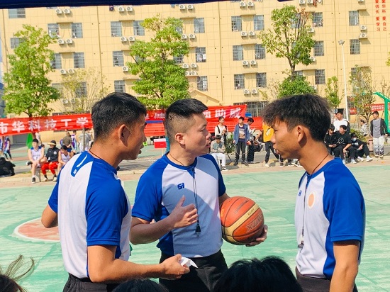 在球场上,同学们们严格遵守篮球裁判规则,比赛愈加激烈,他们始终如一,冷静沉着执裁,直至比赛圆满结束。