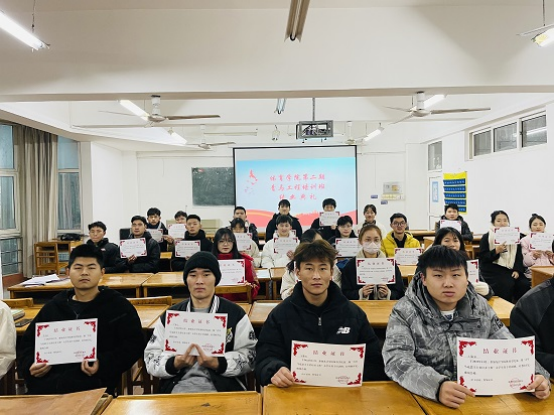 随后,思政科副科长刘晓梅向参加本次培训班学习并顺利结业的全体学员表示热烈祝贺,向为本期培训班付出辛勤劳动的团学干部表示衷心感谢,并对本期培训工作进行回顾和总结,她希望全体学员不忘初心,砥砺前行。最后,刘副科长为顺利结业的学员颁发结业证书并合影留念。