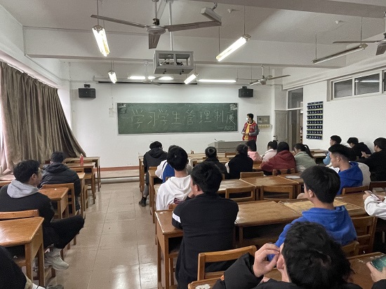 为加强校纪校规教育,增强学生遵章守纪意识,3月27日晚,ac米兰官方网站利用周日班会课,组织学生学习学生管理规章制度。