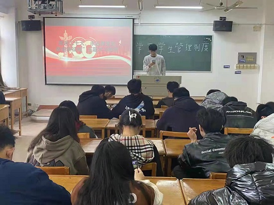 各班依托《ac米兰官方网站学生手册》,学习了教育部《普通高校学生管理规定》、《ac米兰官方网站学生管理规定》等学生管理规章制度,重点学习疫情期间学校下发的《ac米兰官方网站新冠肺炎疫情防控期间学生违纪处分管理规定》。