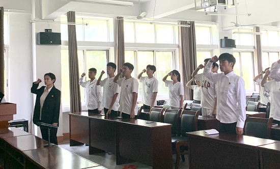 仪式在庄严的国歌中拉开序幕。学院思政科副书记刘晓梅作了开场致辞、宣布入团名单并发表了讲话,她对新入团的同学们表示热烈的祝贺,同时也提出三点希望。一是要坚定理想信念,在人生的关键时期树立正确的世界观、人生观和价值观;二是要充分发挥表率作用,体现出共青团员的先进性;三四要牢记入团誓词,勇担重任。