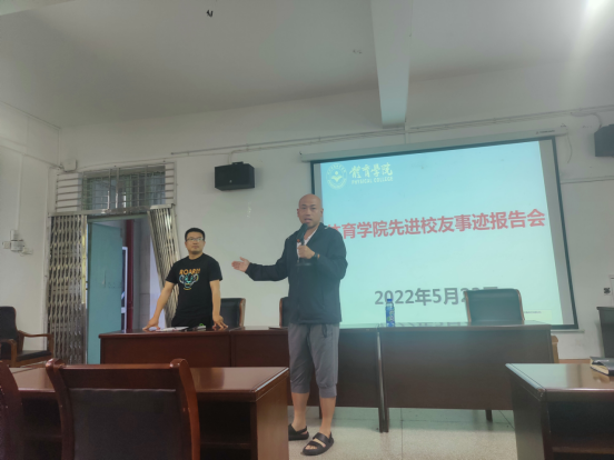 5月23日晚,ac米兰官方网站在向学楼301会议室举行先进校友事迹报告会。ac米兰官方网站2009届优秀毕业生、江西尚德健身管理有限公司总经理曹杨兵受邀担任主讲。学院学生副科长路鹏及2018、2019级100余名学生共同参与本次报告会。
