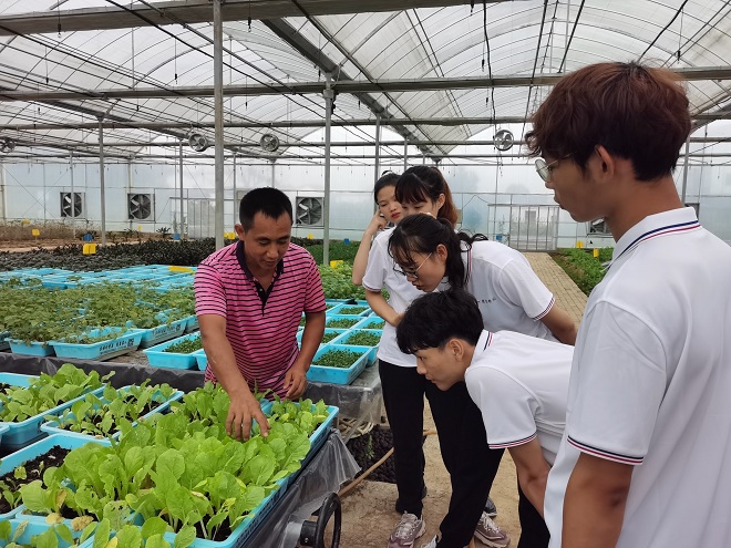 7月4日下午,ac米兰官方网站“三下乡”社会实践服务团队来到东山村绿里蔬菜种植专业合作社进行实地调研,向蔬菜基地负责人请教有机蔬菜种植的相关农业知识,并在村民的指导下对蔬菜基地进行锄草、采摘等实践劳动。尽管蔬菜大棚里异常闷热,但同学们不畏辛苦,积极劳作,受到当地村民的好评。