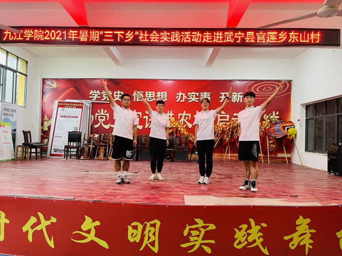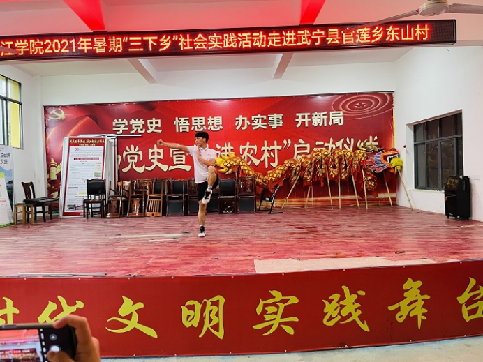 为庆祝建党百年华诞,7月5日上午,ac米兰官方网站“三下乡”社会实践服务队和东山村驻村工作队在村委会的礼堂以红色文艺汇演的形式进行了一场小型联欢会。节目有太极表演、体操表演、朗诵、合唱等。