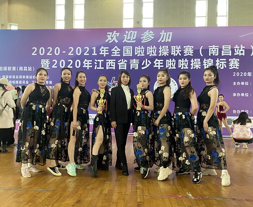 2020年11月27日至11月29日,由国家体育体育总局体操运动管理中心主办的2020-2021年全国啦啦操联赛(南昌站)在江西东华理工大学落下帷幕,此次比赛共83个代表队合计1855人。历经三天的激烈角逐,我校队员不畏强手、奋勇拼搏,顶住了巨大的压力击败了各个强敌。最后,在比赛中荣获公开青年组校园规定街舞啦啦操第一名,爵士啦啦操第一名,自选街舞啦啦操第二名的优异成绩。