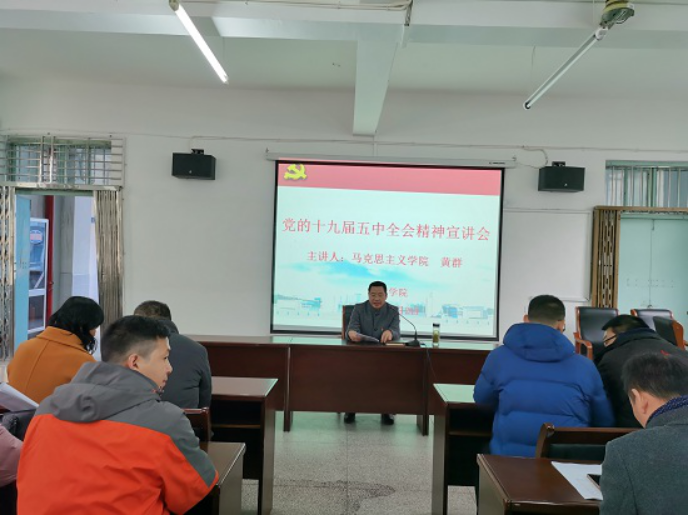 为深刻领会党的十九届五中全会的精神实质和丰富内涵,推动学习活动深入扎实开展,12月2日下午,ac米兰官方网站在向学楼301会议室召开党委中心组(扩大)学习会暨党的十九届五中全会精神宣讲会,邀请马克思主义学院黄群副教授作党的十九届五中全会精神宣讲。学院党政班子成员、科室负责人、全体党员和全院教职工参加了宣讲会,宣讲会由院党委书记付和忠主持。