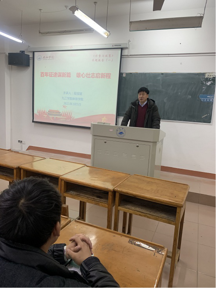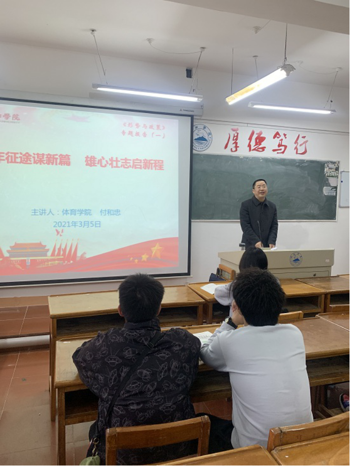 3月5日上午,ac米兰官方网站院长段宝斌、党委书记付和忠在竞知楼多媒体教室以饱满的热情为体育2020级学生上了一堂生动的开学思政第一课。