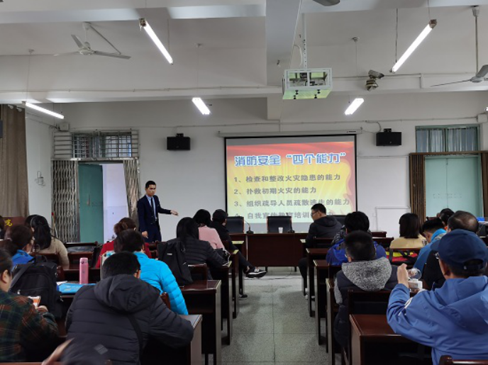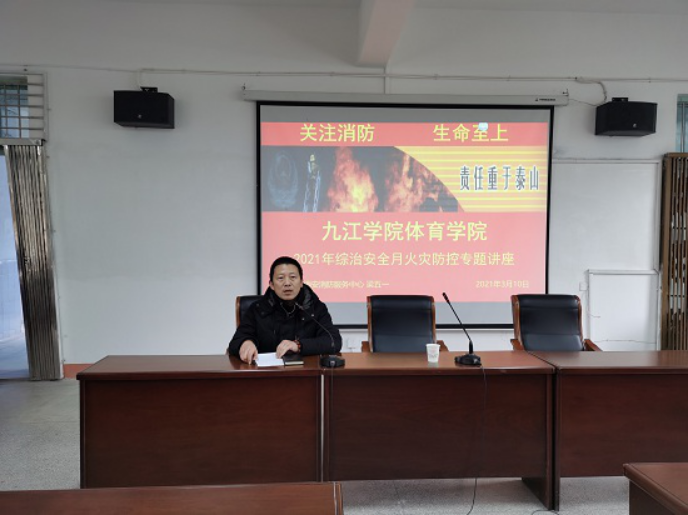为增强全体教职工应急意识,提升安全素质,提高防灾减灾救灾能力,遏制重特大安全事故的发生,3月10日下午,ac米兰官方网站在向学楼301会议室开展综治安全月教育学习活动,邀请九江市消安消防服务中心主任梁五一来学院作火灾防控专题讲座,全院教职工参加了专题讲座,讲座由院党委副书记冯亚兵主持。