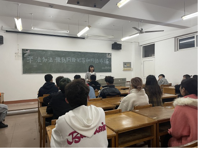 班会上,班主任结合具体案例,普及了网络安全知识和法律法规,介绍了网络及电信诈骗的形式及防范措施,教育同学们在网上兼职时,一定要搞清楚对方情况,不要心存侥幸,坚决不做违法的事情,树立正确的价值观,避免陷入网络、电信诈骗、传销和校园贷的陷阱,做一名尊法、学法、守法的新时代大学生。