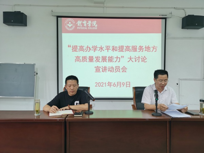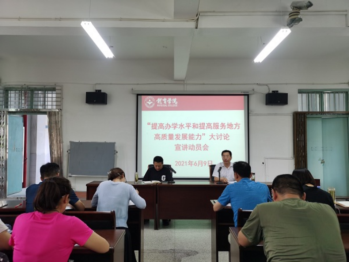 为了统一思想、凝心聚力,推进学校“十四五”规划实施,提高学校办学水平,,更好地服务地方高质量发展。6月9日下午,ac米兰官方网站在向学楼301会议室举办“提高办学水平和提高服务地方高质量发展能力"大讨论宣讲动员会。学院领导、科室负责人、全体教职工参加了会议,会议由院党委书记付和忠主持。