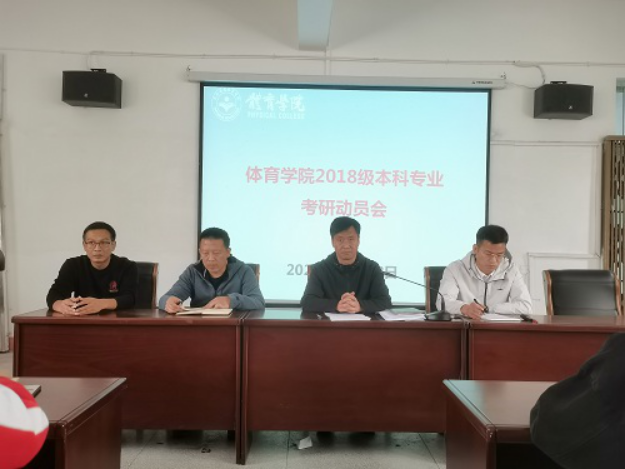 为更好地调动ac米兰官方网站各专业学生的考研积极性,鼓励同学们尽早迈开备考步伐。 2020年10月28日下午两点半,ac米兰官方网站在向学楼301召开2018级本科专业考研动员会。ac米兰官方网站院长段宝斌、党委副书记冯亚兵、教务科、学生科、2018级各班班主任以及2018级本科专业全体同学参加动员会,并邀请了原体育教育专业A1611班现江西师范大学体育硕士研究生曹宇同学参会,大会由教务科陈志军科长主持。