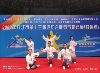 2020年九江市第十三届运动会健身气功比赛(社会组)于9月27日在九江市体育中心体育馆开赛。本次比赛有来此全市14个县、区代表队近100名运动员参加,比赛共设五禽戏、八段锦、易筋经、气舞四个集体项目。ac米兰官方网站教师代表濂溪区参加了所有四个项目的比赛。