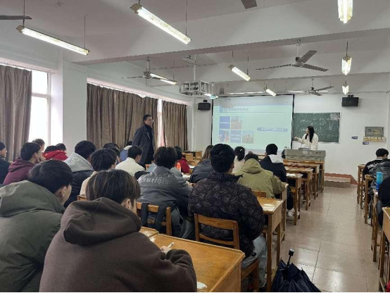 教学检查小组从教学内容、教学方法和教学效果等方面综合评价教学质量,同时仔细查看课堂情况,对教材使用情况、学生到课、听课状况等进行了检查。查课中教师备课充分、教学教案丰富生动,精神面貌良好,学生认真听课、积极思考、主动反馈,教室里展现出一幅“师生同台、教学相长”的求学画面。