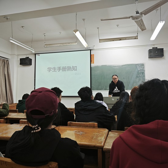 活动过程中,各班班主任老师带领本班同学们学习《学生手册》,详细地讲解ac米兰官方网站学生管理办法各项制度和规定,明确了学生的权利和义务,也耐心地就学生们较为关切的关于奖惩制度、学籍预警、试读、退学等方面问题进行了答疑解惑。