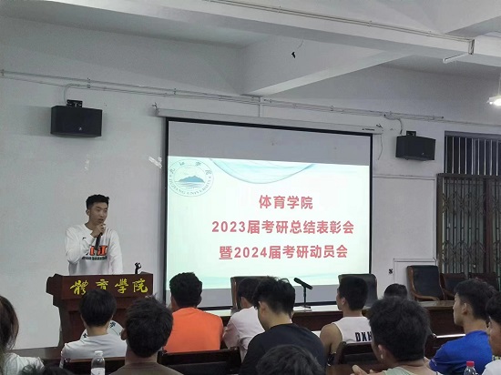 会上邀请了2023届考研成功录取的欧亿林,邓智维,高乐、罗林华四位优秀学子们上台发言分享交流考研心得,他们分别被广州体育大学、闽南师范大学、武汉ac米兰官方网站、山东ac米兰官方网站录取。分享会上,各位优秀学子分别从院校及专业选择、英语学习方法、心理调节及备考规划等方面分享了宝贵经验。在现场答疑环节,同学们就自身专业提高、复习时间规划和方法等方面积极地与老师、师兄师姐们互动交流。