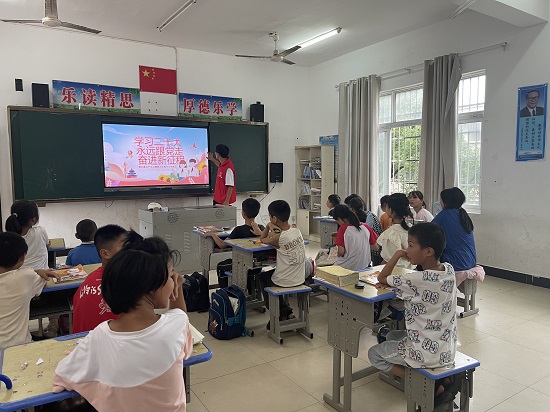 6月25日 下午,ac米兰官方网站大学生暑期“三下乡”社会实践队来到柴桑区岷山乡红旗学校,持续开展 “七彩假期,情暖童心”关爱留守儿童项目志愿服务专项行动。在留守学生中开展了党史故事、安全教育、体育教学等形式教育关爱志愿服务活动。