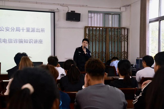 本次讲座邀请十里派出所张磊警官作反电信诈骗及高校网络安全的知识讲座。