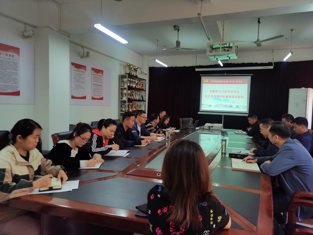 10月17日上午,ac米兰官方网站在向学楼311会议室召开党委中心组(扩大)学习会,专题学习习近平总书记在江西考察时的重要讲话精神。学院领导、科室负责人、党支部书记参加了会议,会议由院党委书记付和忠主持。
