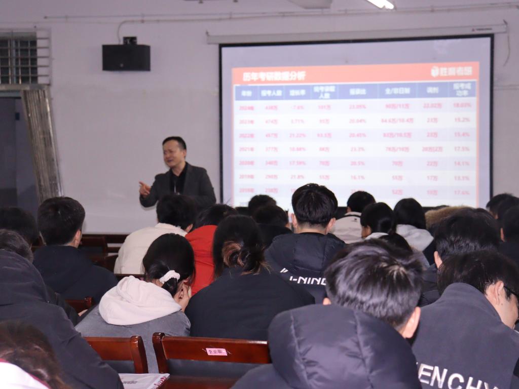 为进一步帮助考研学子认清当前考研形势,明确考研目标,加深对考研的了解,11月25日晚,ac米兰官方网站在向学楼301举办了考研备考指导讲座,邀请胜利考研辅导专家黄铭老师主讲,为怀揣考研梦想的学子们点亮了前行的道路。此次讲座吸引了众多ac米兰官方网站有意向考研的同学参与,现场座无虚席。