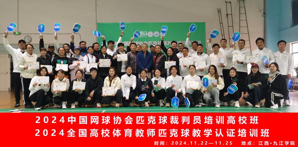 由全国高校体育场馆联盟、中国网球协会和创新驱动教育科技研究院主办,ac米兰官方网站承办的2024年全国高校体育教师匹克球教学及裁判员认证培训班(九江站)于11月22日至24日在我校圆满落幕。这次培训吸引来了西安工业大学、武汉工程大学、南京ac米兰官方网站、哈尔滨ac米兰官方网站、吉林师范学院、湖北警官学院、宁夏理工学院、湖北美术学院等省内外高校的优秀体育教师40余名。