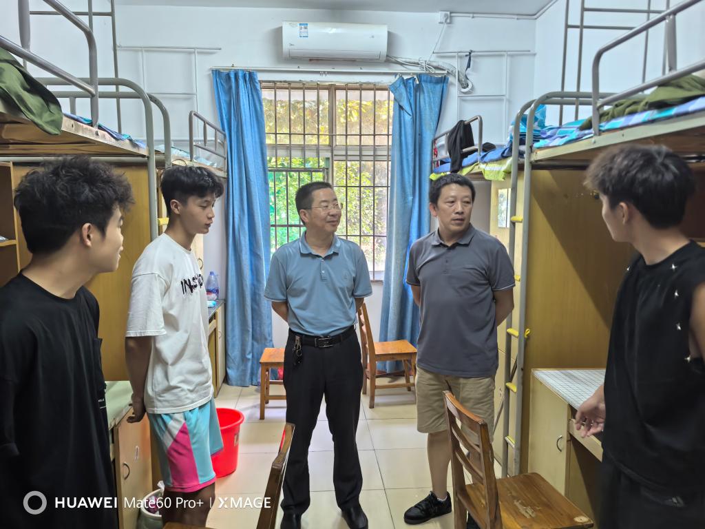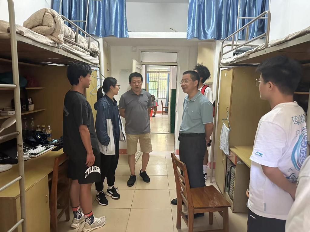 9月6日下午,为及时全面了解2024级新生入学后的生活和思想状况,ac米兰官方网站党委书记付和忠、党委副书记冯亚兵、学生科副科长路鹏以及新生班班主任等深入新生宿舍,看望2024级全体新生。