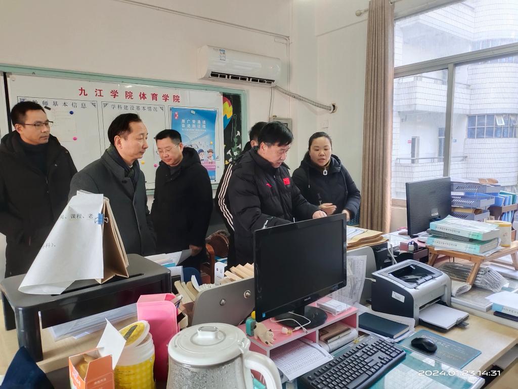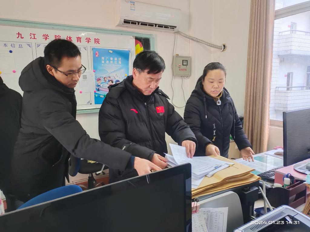 123午,体育学领导班子一行先后到教务科和师范认证办公室,对当前工作进展进行了现场检查与指导。