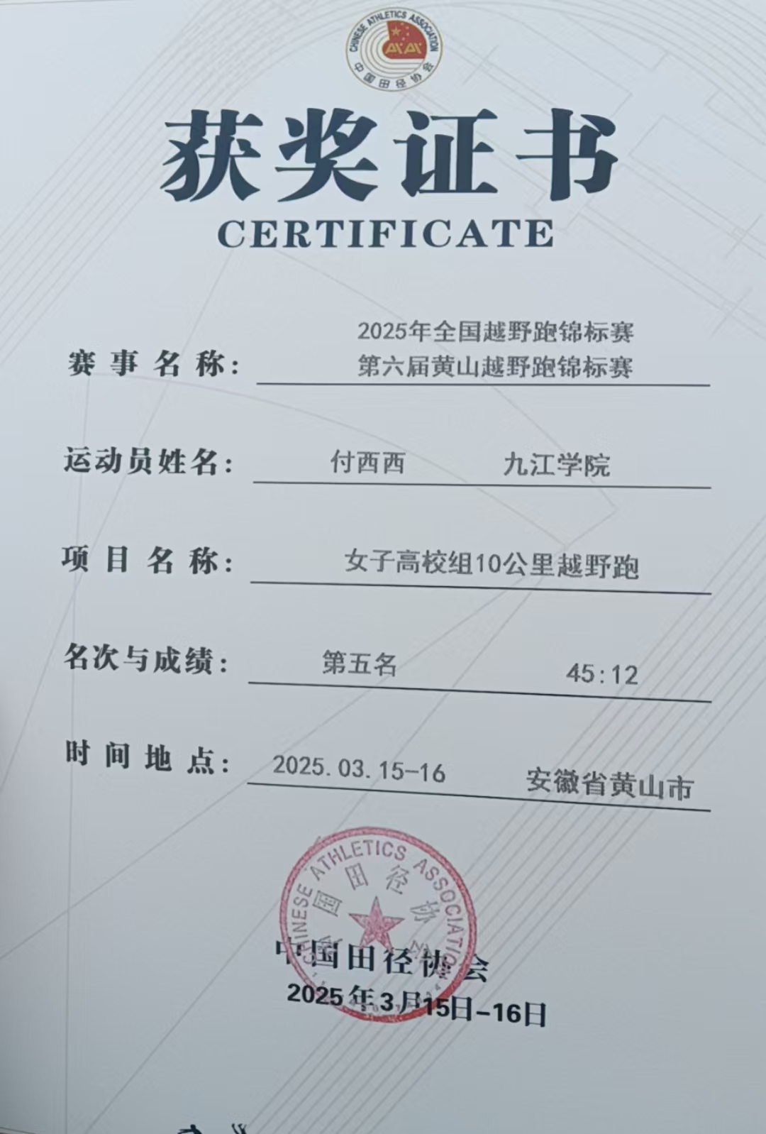 ac米兰官方网站A2412班付西西同学参加女子高校组10 公里越野跑比赛中荣获第五名的好成绩。