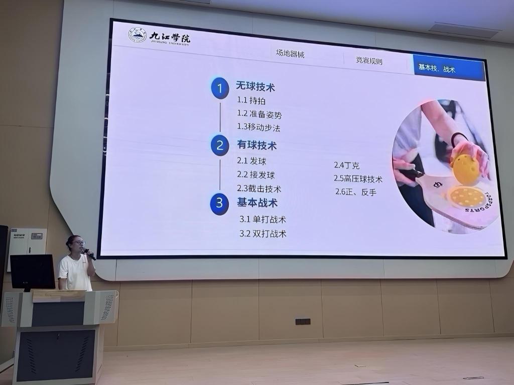 期间九江市教育局选调米兰官网高晓雯博士和李娟教授两位老师为参训教师部分授课。理论环节骨干们认真投入的听课,实践环节中教师们积极互动,现场气氛热烈。许多教师表示,匹克球简单易学、安全性高,非常适合在幼儿园和中小学推广,啦啦操能够有效激发学生的运动兴趣,培养团队协作精神。