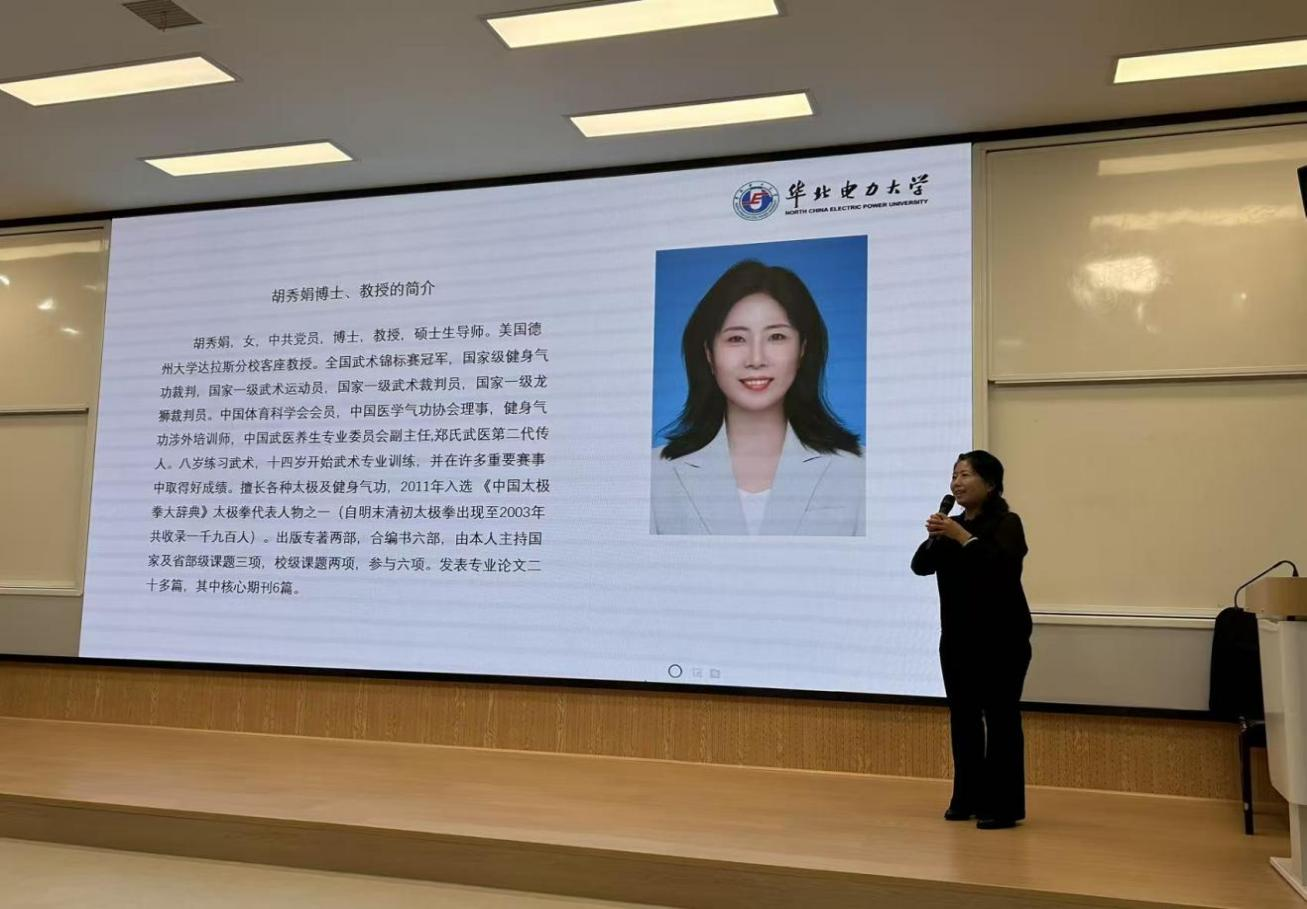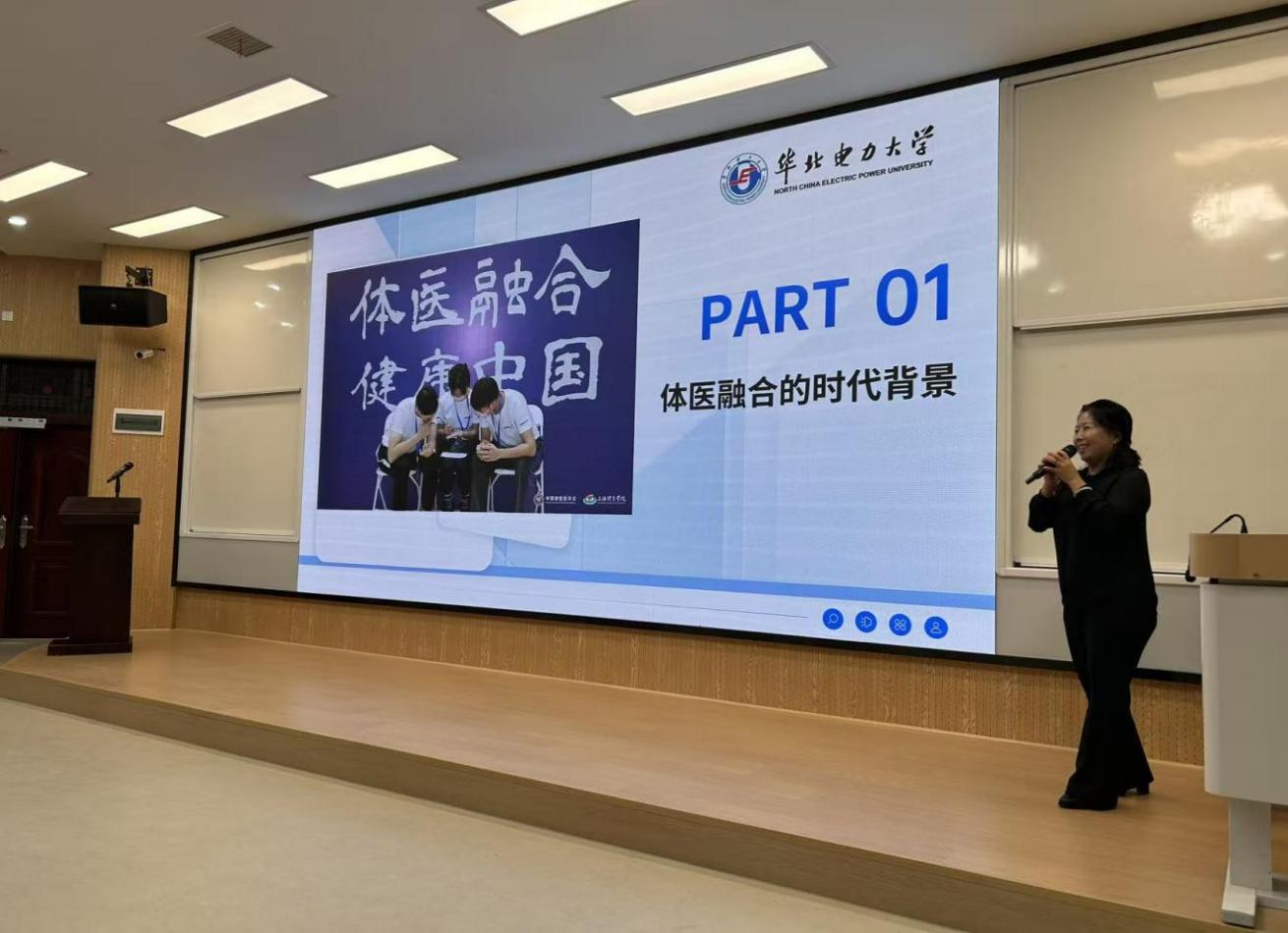 为深化体医融合理念,服务“健康中国”战略,赋能体育学科发展,9月26日晚上19点,在竞知楼阶梯教室,ac米兰官方网站荣幸邀请到华北电力大学胡秀娟教授为米兰官网师生作“体医融合,构建健康中国新引擎”的学术讲座,会议由ac米兰官方网站副院长宋涛主持,学院200余名师生聆听了讲座。