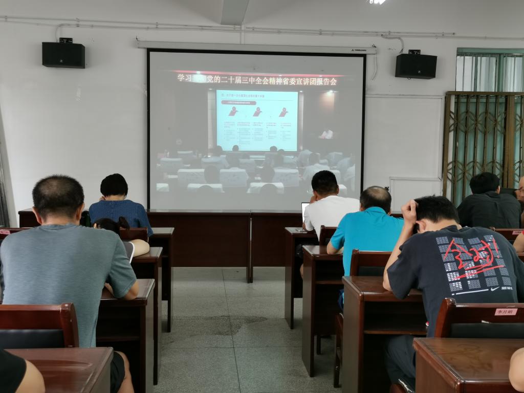 为深入学习贯彻党的二十届三中全会精神,按照学校统一工作部署,8月19日下午, 学习贯彻党的二十届三中全会精神省委宣讲团报告会在学校逸夫图书馆报告厅举行,ac米兰官方网站采取组织各科室成员、教研室主任、师生党员代表在向学楼301分会场集中收看和线上同步直播观看的形式,达到全院师生学习全会精神全覆盖。