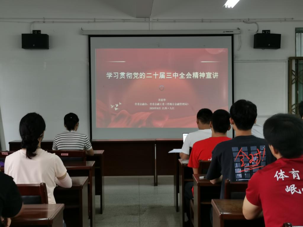 宣讲报告会上,省委宣讲团成员、省委金融办常务副主任、省委金融工委常务副书记、省地方金融管理局局长许忠华围绕深刻领会党的二十届三中全会的重大意义、主要精神、基本要求,进一步全面深化改革的总体要求、重大举措、根本保证等方面进行了全面梳理和系统阐释。