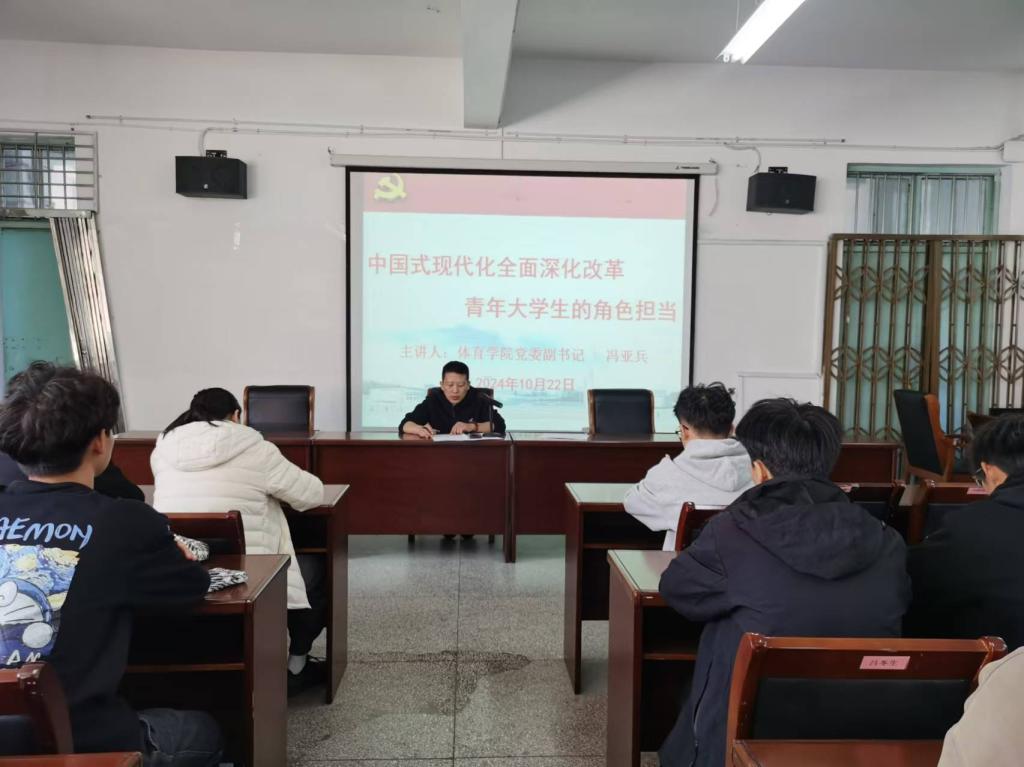 10月22日中午,ac米兰官方网站在向学楼301会议室举行培训班开班仪式,院党委副书记冯亚兵做开班动员,他要求全体学员遵守培训班纪律,协调好自身的学习与训练,珍惜机会,认真学习领悟,不断进步提高,做到学有所思,学有所得,学有所获,圆满完成学习任务。开班仪式结束后,冯亚兵为全体学员讲授开班第一课《中国式现代化全面深化改革 青年大学生的角色与担当》。