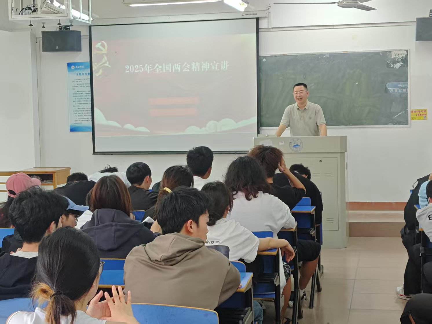3月26日下午,ac米兰官方网站领导班子深入课堂,宣讲2025年全国两会精神,引导青年学子深刻领会、准确把握两会精神实质,切实增强大学生的政治责任感和历史使命感。