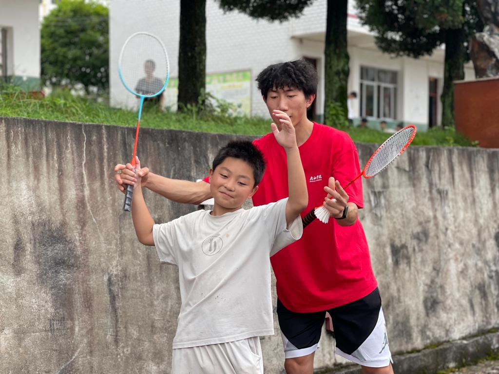 “中考冲刺营”里,实践队员化身专业导师,全方位助力学生体育提升。800 米跑道上,呼吸节奏把控、体能分配策略的悉心指导,帮助学生突破耐力瓶颈;立定跳远区,从摆臂到落地的标准示范,纠正姿势偏差;跳绳场地内,个性化训练计划与高效技巧分享,让学生实现速度与耐力双提升。此外,乒乓球、羽毛球等专项技能教学,从基础握拍到战术配合,逐一拆解指导,让学生在多元运动体验中挖掘潜能,向着体育梦想奋力冲刺。