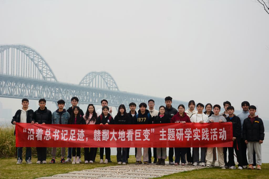 为深入学习贯彻习近平总书记考察江西的重要讲话精神,沿着习近平总书记的足迹学思悟践,3月13日下午,ac米兰官方网站思政科副科长刘晓梅带领学生党员、入党积极分子及学生会干部等25名学生赴长江国家文化公园九江城区段,开展“沿着总书记足迹,赣鄱大地看巨变”主题研学实践活动。
