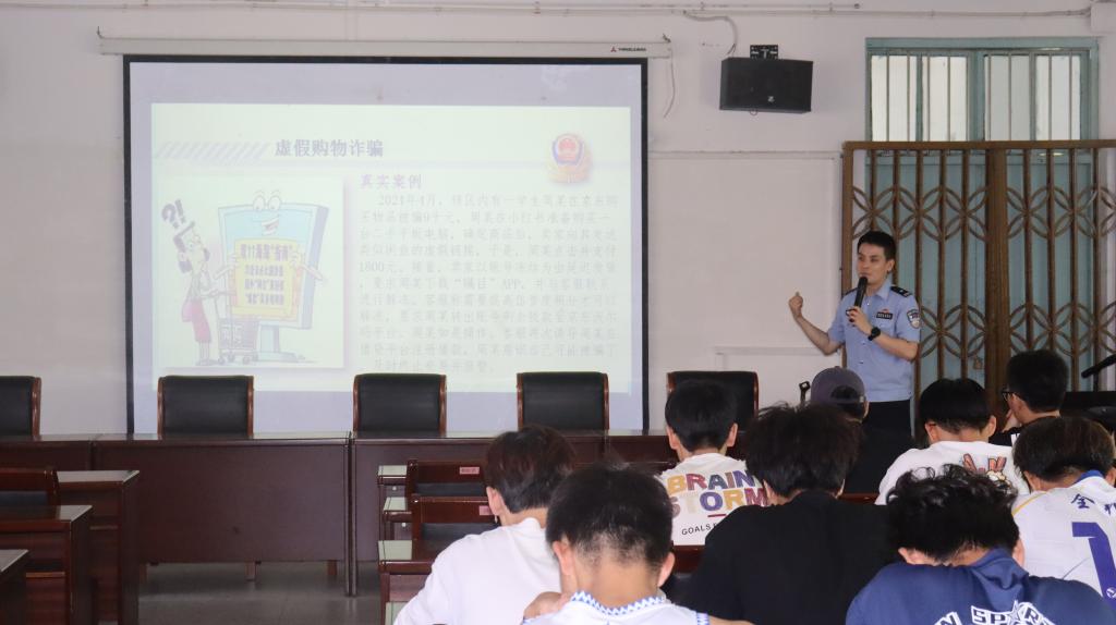 讲座上,马维警官针对学校中的违规行为、校园暴力、网络诈骗、赌博等学生可能遇到的实际问题,以鲜活生动的案例为切入点,深入浅出地剖析法律要点。通过真实案例分析、法律条文解读,引导学生们明确行为边界,强化法治观念,他呼吁同学们从自身做起,树立法治观念,增强安全意识。