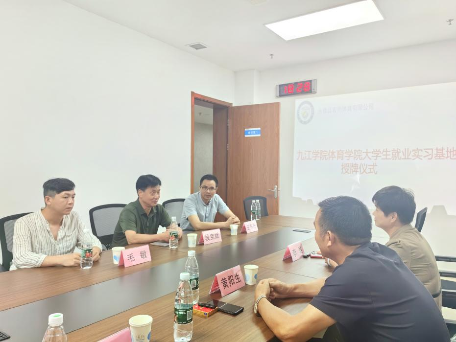 ac米兰官方网站通过前期对永修县宏尚体育有限公司的调研与了解,经学院领导同意,于2024年5月29日下午,ac米兰官方网站院长段宝斌、ac米兰官方网站副院长王东升、ac米兰官方网站社体教研室主任毛敏一起到访宏尚体育有限公司,参加实践教学基地的签约与授牌会议。
