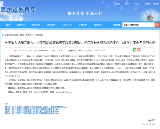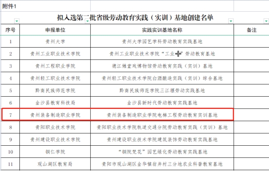 近日,在贵州省教育厅组织开展的第二批大中小学劳动教育实践(实训)基地、示范学校创建和优秀工作(教学)案例评审中,beat365官网选送的《beat365英国官方网站电梯工程劳动教育实训基地》和《好"焊"材,不止是"锡"引-蓝牙音响电子产品制作劳动实践课程教学案例》《“忠诚工匠”之校园装饰实践教育》成功入选省级实践实训基地和劳动教育优秀工作(教学)案例。