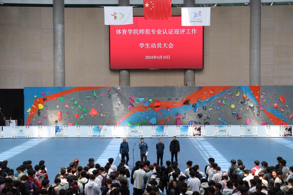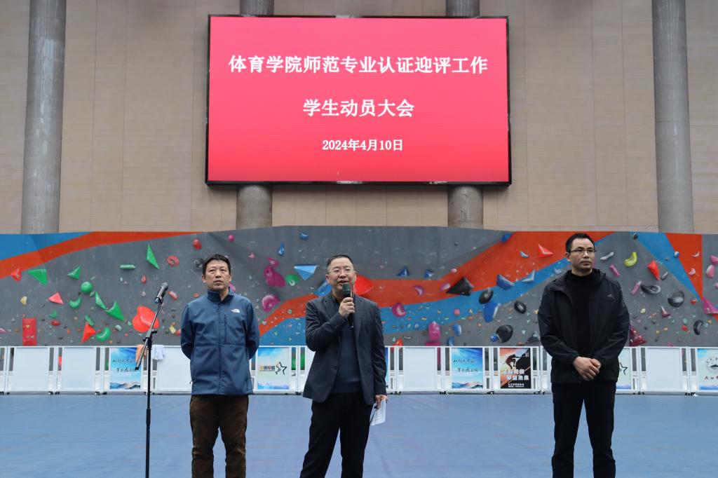 为做好学院体育教育师范专业认证迎评工作,动员全体同学积极投入到认证工作中来,4月10日下午,ac米兰官方网站在体育训练中心召开师范认证迎评工作学生动员大会。院党委书记付和忠、副院长王东升出席了会议,学生科、思政科负责人及全体班主任、全体在校生参加了会议。大会由院党委副书记冯亚兵主持。