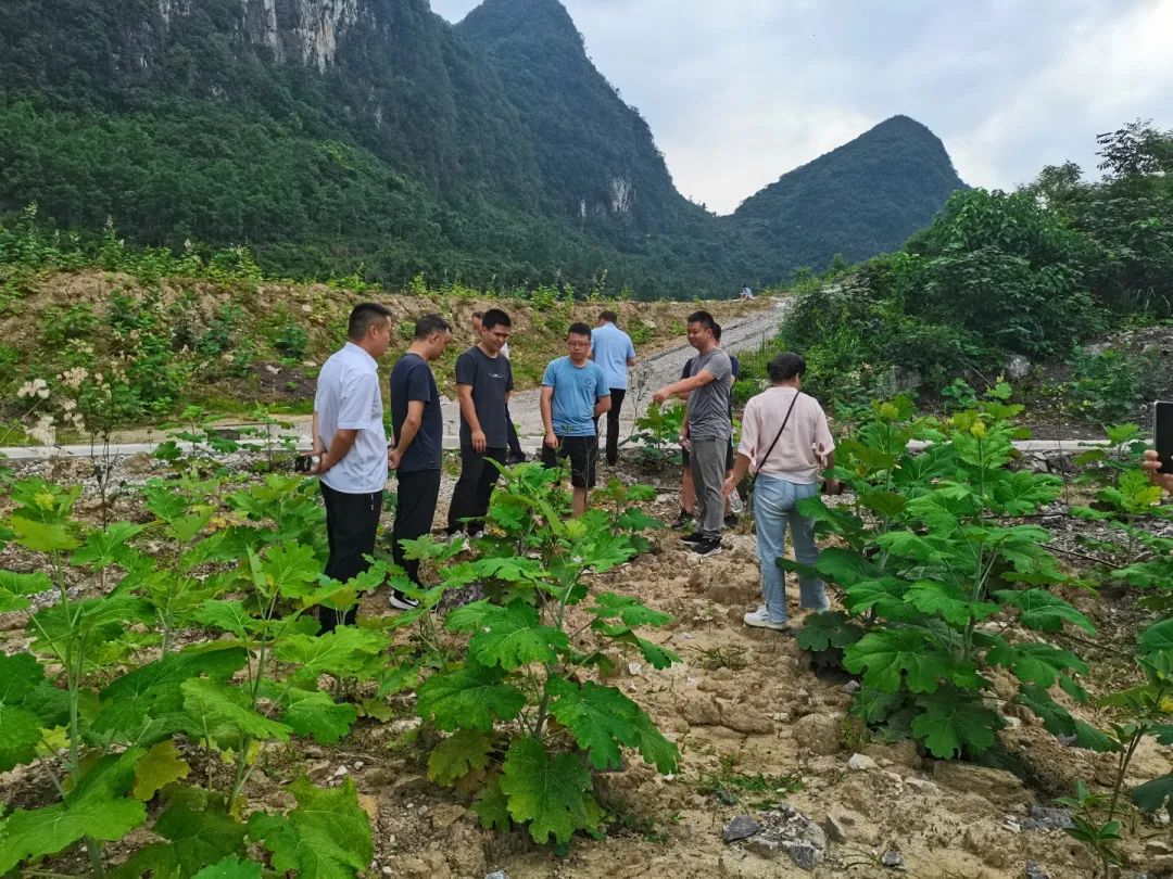 村支两委带领查看中草药(博落回)生长情况