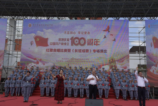 为讴歌伟大的中国共产党,歌颂伟大的祖国,让全校师生唱响爱国爱党爱社会主义的时代旋律,弘扬爱国主义精神,展示蓬勃向上的装院风貌,大力营造庆祝建党100周年的浓厚氛围。6月25日下午,在beat365官网足球场上,“百年峥嵘颂 赞歌献给党”庆祝中国共产党成立100周年全院师生红歌合唱比赛暨《长征组歌》专场演出拉开序幕。
