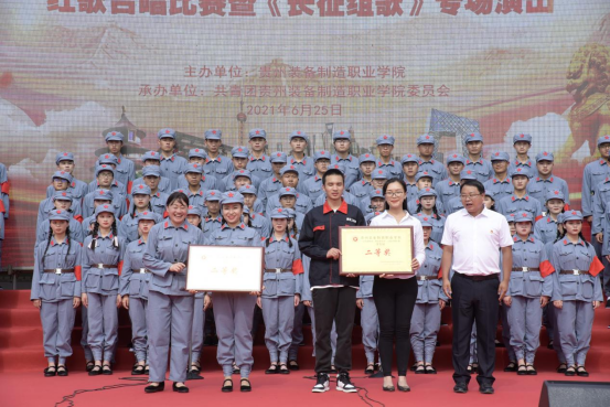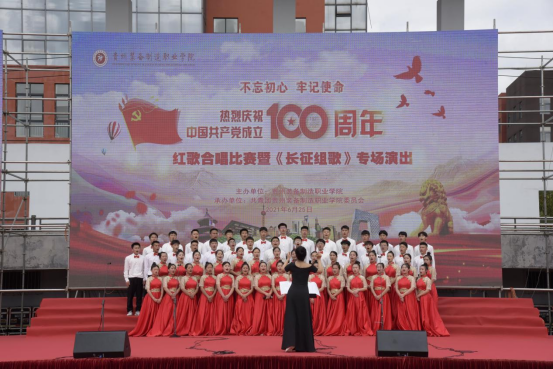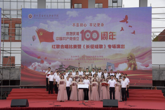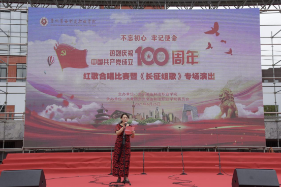 活动开始,学院党委书记熊星同志致辞,她说:2021年是两个百年目标交汇、两个五年计划交接的关键之年,是中国共产党成立100周年,今天装院师生要用歌声告白祖国,用歌声赞美祖国!习近平总书记心系贵州发展、情系贵州人民,多次作出重要指示,在贵州发展的每一个关键节点,都亲自给我们定方向、指路径、给支持、鼓干劲。当前贵州正处于围绕“四新”抓“四化”发展阶段,在奋力推动高质量发展的征程上,全院师生要自觉担负起“一代比一代强”的青春责任,把人生理想融入国家和民族的事业中。要自觉践行社会主义核心价值观,投身中国特色社会主义的伟大实践中,并为之奋斗终身。同学们要崇德尚能、励学敦行,从小事做起,不断学习真本领,努力成为堪当民族复兴重任的时代新人,在谱写中国梦贵州精彩篇章中放飞青春梦想、实现人生出彩。当前,学校正处于加速推进争取“双高”校建设的重要发展时期,希望同学们坚定的把习近平总书记重要讲话精神作为奋进新时代的思想指引,自觉从百年党史学习中激发信仰、获得启发、汲取力量,传承红军长征精神,立大志、明大德、成大才、担大任。