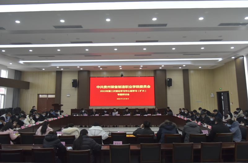 2月25日,学院举行2022年第二次理论学习中心组学习(扩大)专题研讨会。集中学习了习近平总书记重要文章《坚持走中国特色社会主义法治道路,更好推进中国特色社会主义法治体系建设》《国务院关于支持贵州在新时代西部大开发上创新路的意见(国发[2022]2 号)》《贵州省先进装备制造业“十四五”发展规划》,以及教育部、贵州省2022年教育工作要点;熊星同志传达了“全省教育系统2022年春季学期开学工作暨省教育厅‘四下基层’部署会视频会议”精神,并结合新国发2号文件精神对推进学院改革发展提出了要求,作出了工作部署。金焱同志结合“职教20条”《职业教育提质培优行动计划(2020-2023年)》《关于推动现代职业教育高质量发展的意见》三个文件,对新国发2号文件进行深度解读,从职业教育数字化升级、深化产教融合、提升社会服务能力等对学院主动抢抓机遇、全力推进扩容提质作了交流。