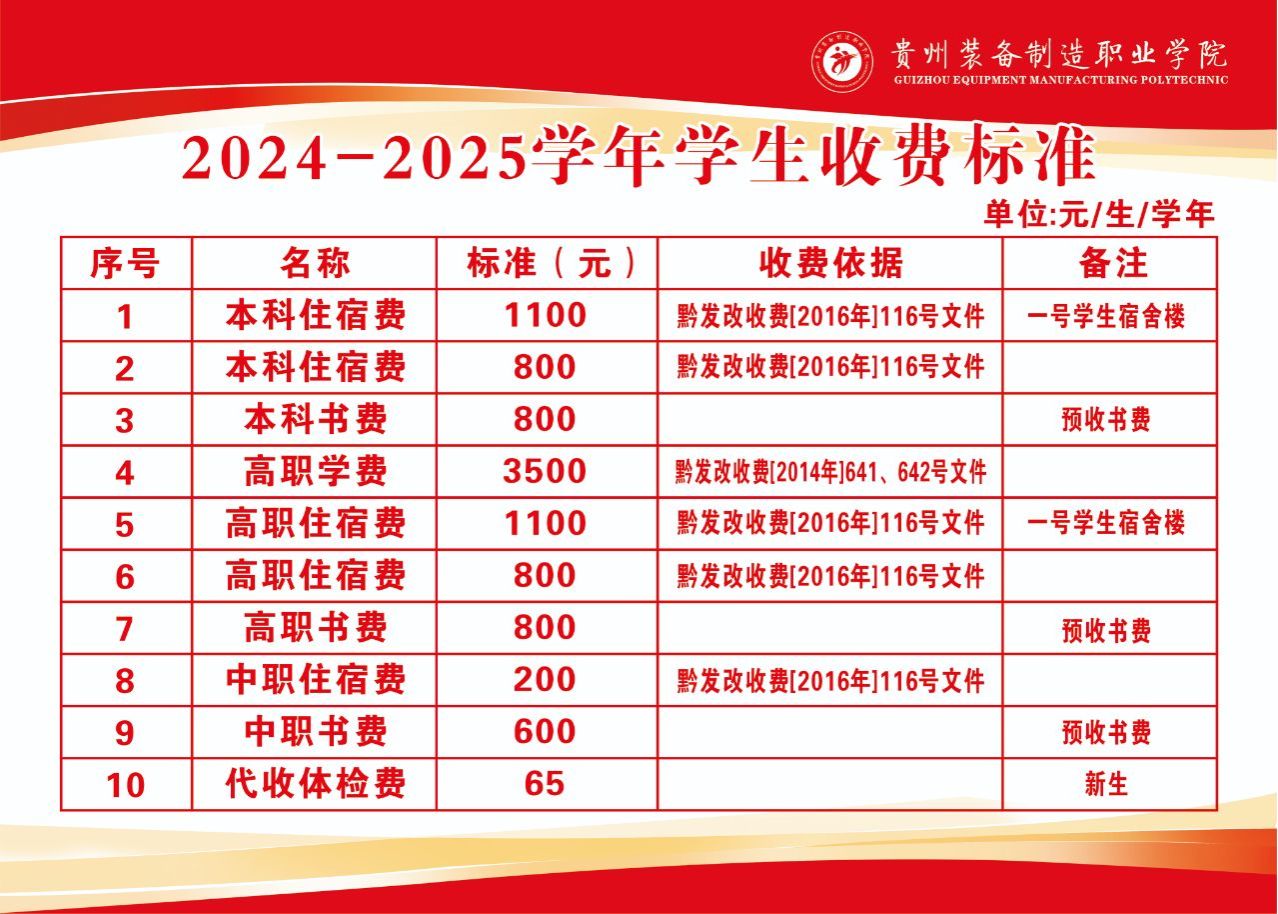 2024-2025学年学生收费标准
