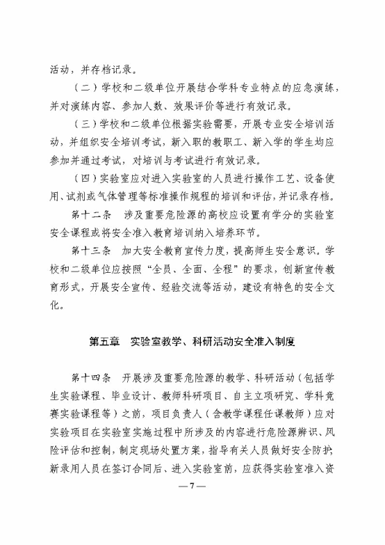 教育部办公厅关于印发《高等学校实验室安全规范》的通知