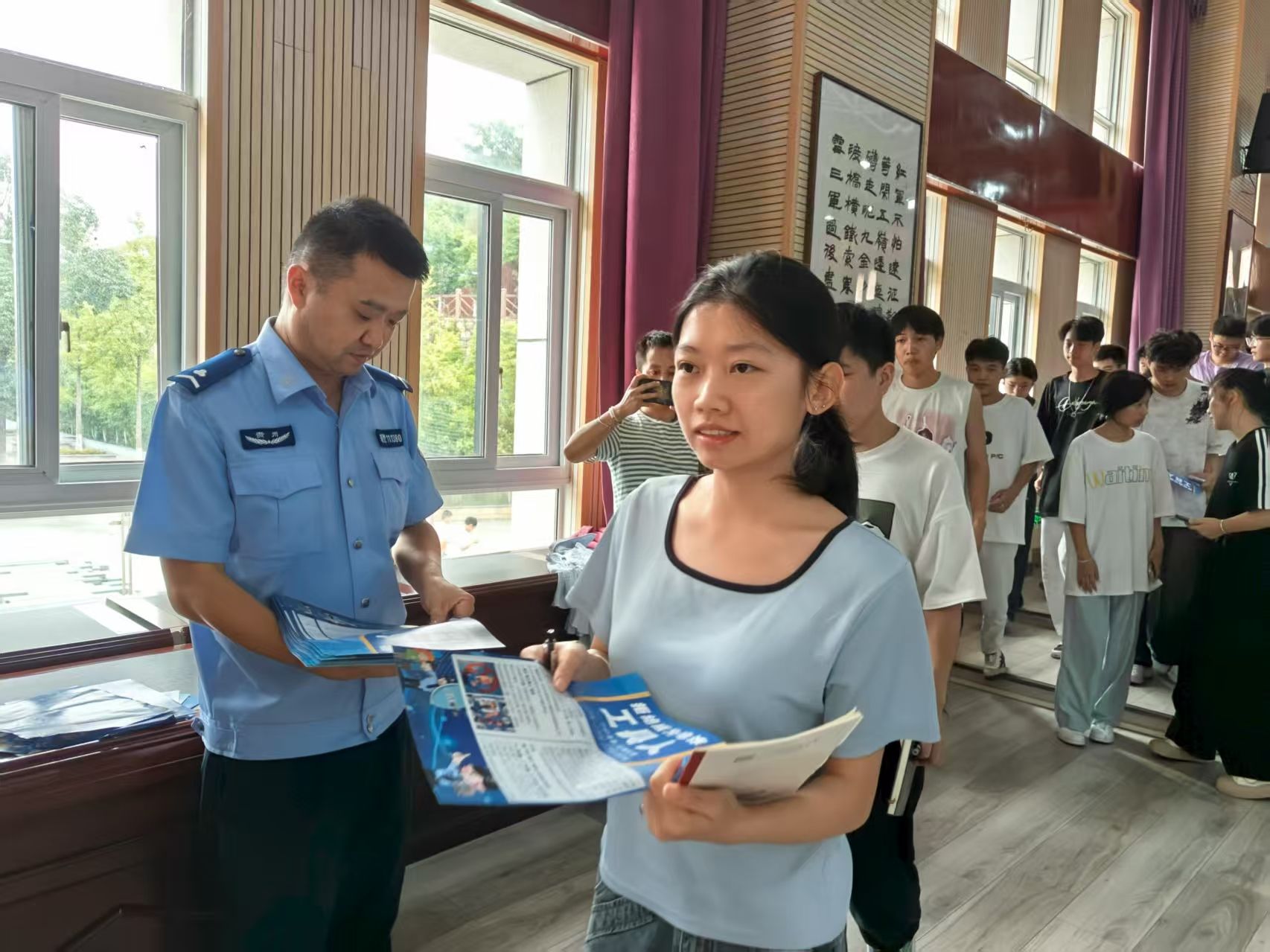 活动中,刘警官聚焦刷单返利、校园贷等学生高发诈骗类型,结合本地真实案例“以案说法”,揭露诈骗手法与陷阱,讲解识骗及应急处置方法。同时为扩大宣传覆盖面,讲座结束后,工作人员组织参会学生宿舍寝室长依次领取反诈宣传单,为后续宿舍内学习宣讲此次讲座精神及全员研讨做好准备,进一步推动反诈知识融入校园生活,最终实现“人人有反诈意识”的全覆盖效果。