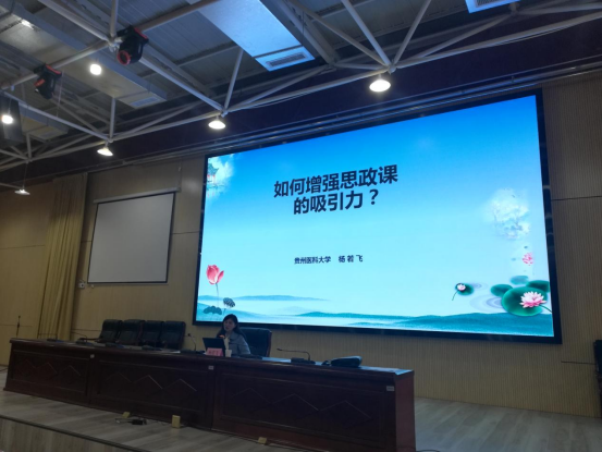 11月9日,由思政教学工作部主办,《思想道德与法治》精品课课程组承办的关于“如何上好一堂思政课”系列讲座第一讲,在德润楼101学术报告厅举行。本次讲座邀请到的主讲人是贵州医科大学马克思主义学院杨若飞副教授,各系优秀学生代表及全体思政教师到场聆听。