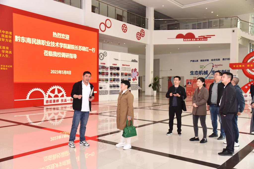 5月8日下午,贵州省黔东南民族职业技术学院副院长苏晓红,后勤处处长罗海燕一行6人,莅临beat365官网调研后勤服务工作,院党委委员、副院长张黔成,党政办、后勤处、机械工程系主要负责同志及后勤处相关同志陪同调研。