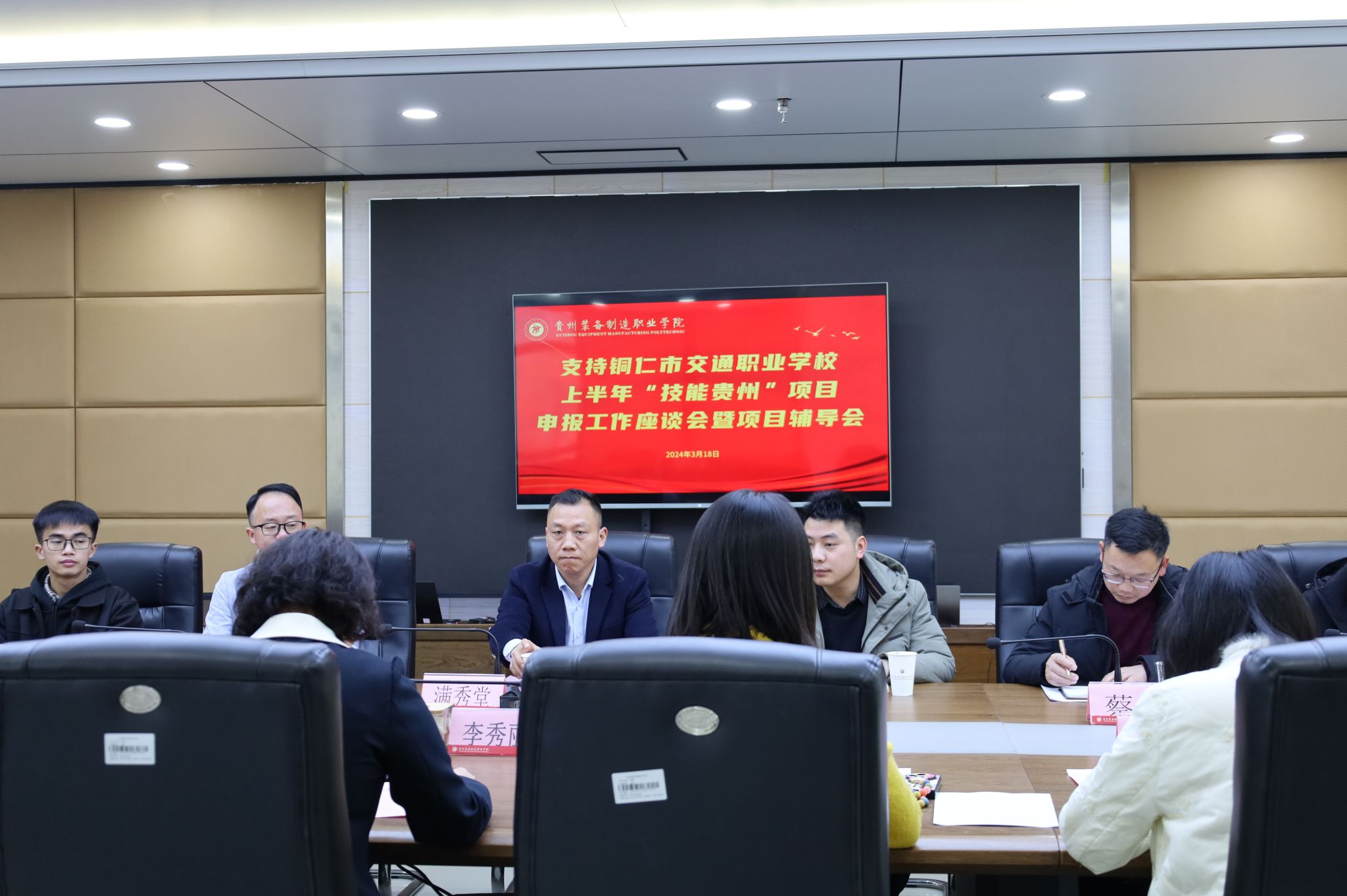 示范引领,精准帮扶。2024年3月18日—19日,学院与铜仁市交通职业学校开展2024年上半年“技能贵州”项目申报工作座谈会暨项目辅导会。铜仁市交通职业学校党委副书记、校长满秀堂总体介绍学校上半年“技能贵州”项目申报总体情况。学院党委委员、副院长李秀丽表示学院将全力支持铜仁市交通职业学校“技能贵州”项目建设,同时安排由省级职业教育教学名师工作室负责人杨林教授带领团队成员做好项目申报指导。